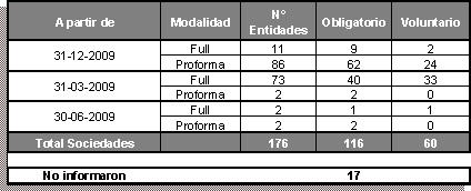 2- Seguir en el GAAP chileno en 2009 y en 2008, pero en un documento separado (proforma) presentar además un IFRS completo sólo de 2009.