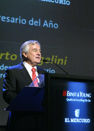 "Al recibir este premio Empresario del Año 2007, que me otorga El Mercurio y Ernst & Young, pienso que es un reconocimiento al largo camino trazado por quienes me antecedieron en esta trayectoria como empresario. Me refiero a mi tío Anacleto y a mi padre Gino", dijo anoche el presidente de Empresas Copec en su discurso de agradecimiento.