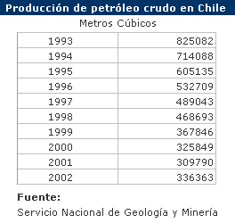Según estadísticas de la Comisión Nacional de Energía, el petróleo que se emplea en Chile principalmente se importa. Sus orígenes son diversos y en 2006 provino de: Argentina 58%, Ecuador 10%, Venezuela 6%, Perú 1% y otros 22%.