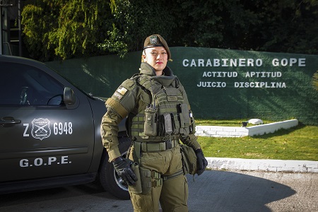 Es la primera mujer egresada del Curso de Operaciones Policiales Especiales 2015 (GOPE) de Carabineros. Mientras realizaba el curso destacó por su rendimiento académico y condiciones personales. Asegura que el apoyo de su marido, quien también es parte del cuerpo de Carabineros, y de su hijo fueron fundamentales.