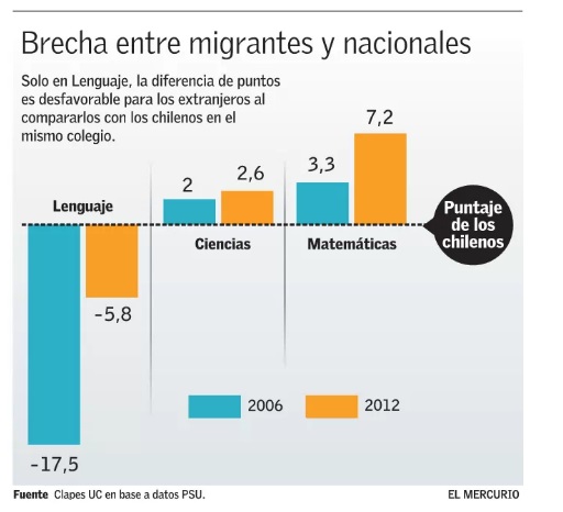 Cuatro mil 103 extranjeros se inscribieron este año para rendir la Prueba de Selección Universitaria (PSU), que terminó ayer. La cifra refleja un explosivo aumento de los migrantes en la educación chilena. Pero según un estudio de Clapes UC, el número de alumnos foráneos no es lo único al alza. También se ha elevado su desempeño en el examen. El análisis comparó los resultados de chilenos y extranjeros en 2006 y 2012, sobre la base de las pruebas rendidas a fines de los años anteriores. Al fijar ciertos parámetros -como sexo, ingresos familiares y asistir al mismo colegio-, se detectó que los migrantes tuvieron mejores resultados que sus compañeros chilenos en Matemáticas y Ciencias (ver infografía). El estudio también abordó la prueba de Lenguaje, donde la brecha fue negativa para los foráneos. Sin embargo, el área podría reflejar los efectos de la brecha idiomática. Una oportunidad El coordinador de políticas sociales de Clapes UC, Sergio Urzúa, ve en estos resultados el reflejo de un capital humano deseoso de competir y destacar. El hecho de que las familias de estos alumnos hayan dejado su país en busca de oportunidades sería un factor clave en el buen rendimiento. "Las ganas de progresar son una motivación inmensa que mueve a los hijos de inmigrantes (...) Tienen además, en general, el apoyo de una familia que conoce lo que es el sacrificio", plantea Urzúa. El investigador descarta que para potenciar la integración se deban fijar cuotas o vías de admisión especial: "Empujones iniciales pueden ayudar, pero es el esfuerzo continuo lo que mueve a muchas de las familias que han optado por Chile (...) Ahí hay un potente motor de progreso que hay que aprovechar". Para Pablo Valenzuela, director del Servicio Jesuita a Migrantes (SJM), estos resultados podrían ser aún mejores si el país contara con políticas más inclusivas y se agilizaran procesos como el reconocimiento de estudios previos en el país de origen. En casos que ha recibido el SJM, esto ha obstaculizado la inscripción de los alumnos en la PSU. María Liliana Delgadillo, directora del Magíster en Inclusión e Interculturalidad Educativa que la U. San Sebastián abrirá en 2018, agrega que es necesario instruir a los profesores para responder a un escenario intercultural: "Los planes formativos que ellos tuvieron no responden a esta realidad emergente". Aunque destaca la preocupación del Gobierno por avanzar en la materia, Delgadillo afirma que "es todo muy lento para la velocidad de lo que se requiere (...) Vamos muy atrasados, pero no podemos desconocer que se están haciendo cosas". "Las ganas de progresar son una motivación inmensa que mueve a los hijos de inmigrantes".