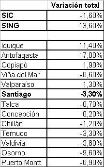 En tanto, los clientes regulados del Sistema Interconectado Central (SIC), entre Tal Tal y Chiloé, experimentarán una variación promedio de un -1,6% en sus cuentas de electricidad a partir de esta semana.