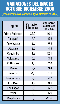 En tanto, para el todo el 2008, tres regiones mostraron una variación negativa.