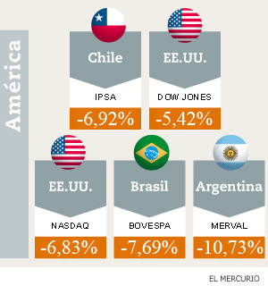 Desde el estallido de la crisis financiera, esta fue la peor jornada para los mercados internacionales, en la que el IPSA llegó a caer hasta 7,5%, con 39 de sus 40 acciones en terreno negativo. A la compleja situación externa, ese día se sumó un débil dato del Índice Mensual de Actividad Económica (Imacec) a nivel local.